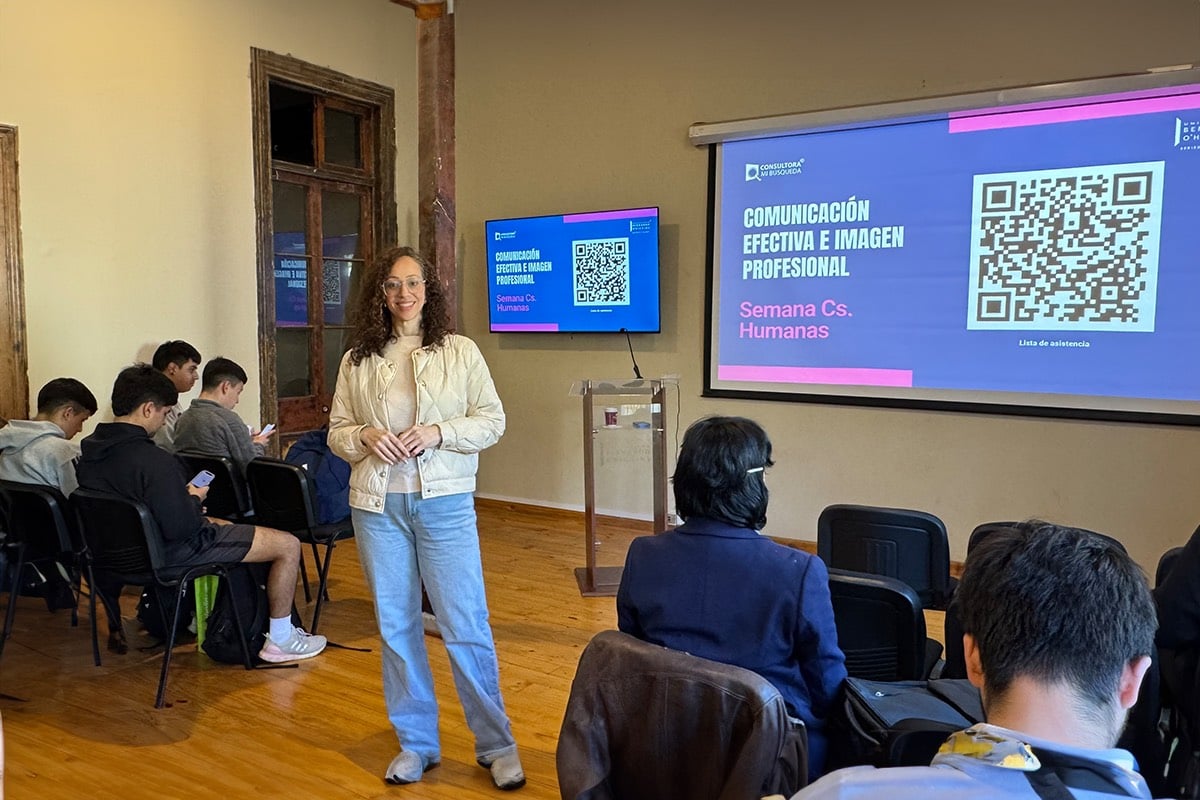 La actividad estuvo dirigida por Odette Aboud, comunicadora social e integrante de la consultora Mi Búsqueda, quien abordó aspectos clave como el lenguaje corporal, la conexión con las audiencias y la importancia de construir una marca personal coherente, tanto para la inserción laboral como para el fortalecimiento de redes profesionales.