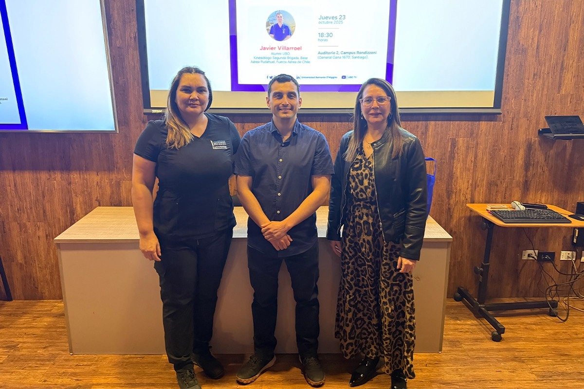 En el marco de las acciones impulsadas por la Dirección de Empleabilidad y Alumni de la Universidad Bernardo O’Higgins (UBO), la carrera de Kinesiología realizó una charla dirigida a estudiantes de práctica integrada, con el objetivo de fortalecer los vínculos con titulados y promover la empleabilidad temprana. La actividad contó con la participación del kinesiólogo y Alumni UBO, Javier Villarroel, quien actualmente se desempeña en la Segunda Brigada de la Fuerza Aérea de Chile, Base Aérea Pudahuel.