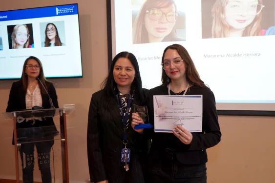 Finalmente, Macarena Alcalde, egresada de la carrera, expresó su satisfacción al cerrar este ciclo: “Recibir este reconocimiento es realmente muy lindo, porque detrás de él hay mucho esfuerzo y dedicación. Rendimos la prueba en 2023 y fue un proceso exigente, pero lleno de aprendizaje. Que la universidad valore ese trabajo y nos reconozca de esta manera es muy gratificante y significativo para todas nosotras”.